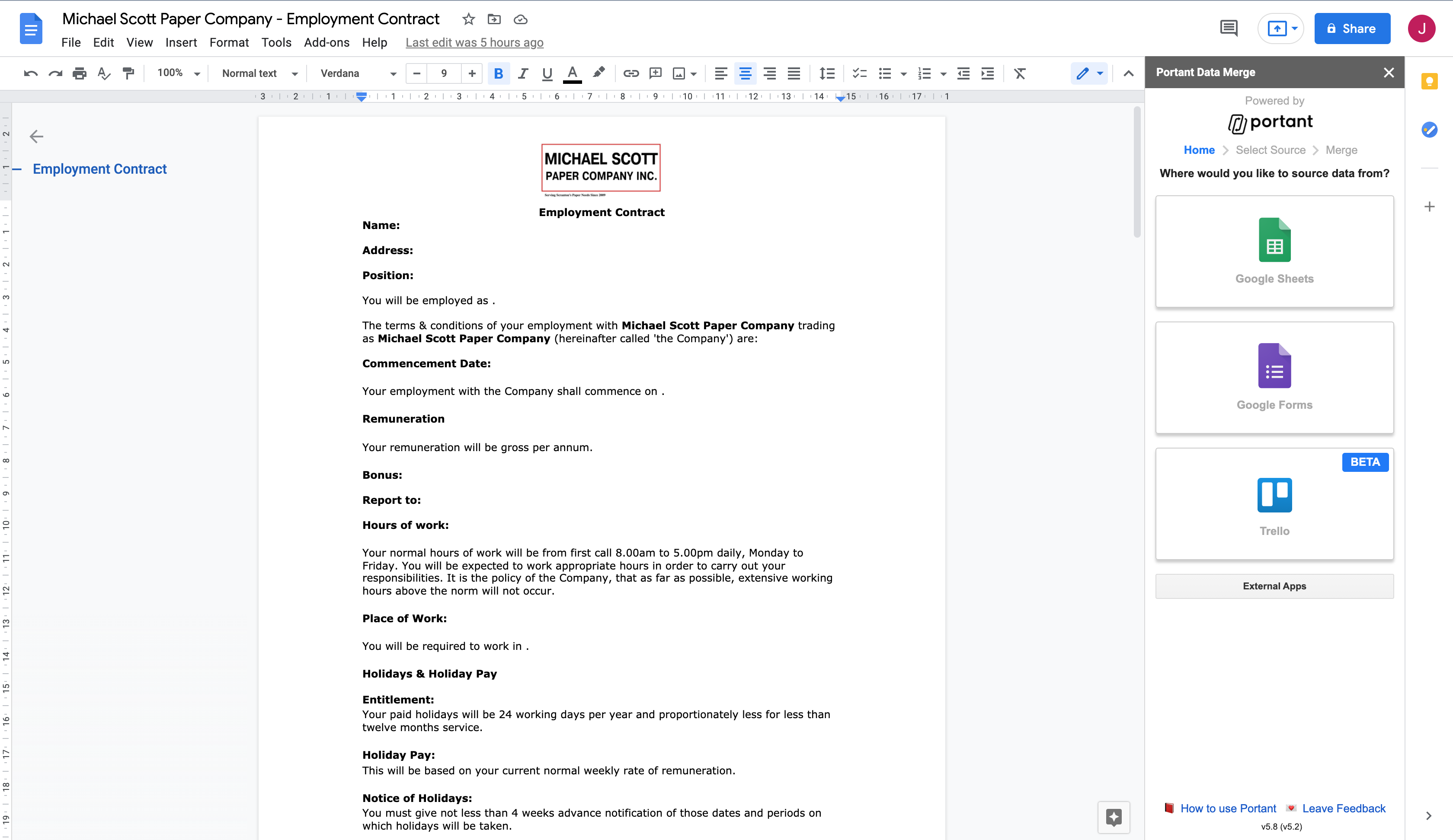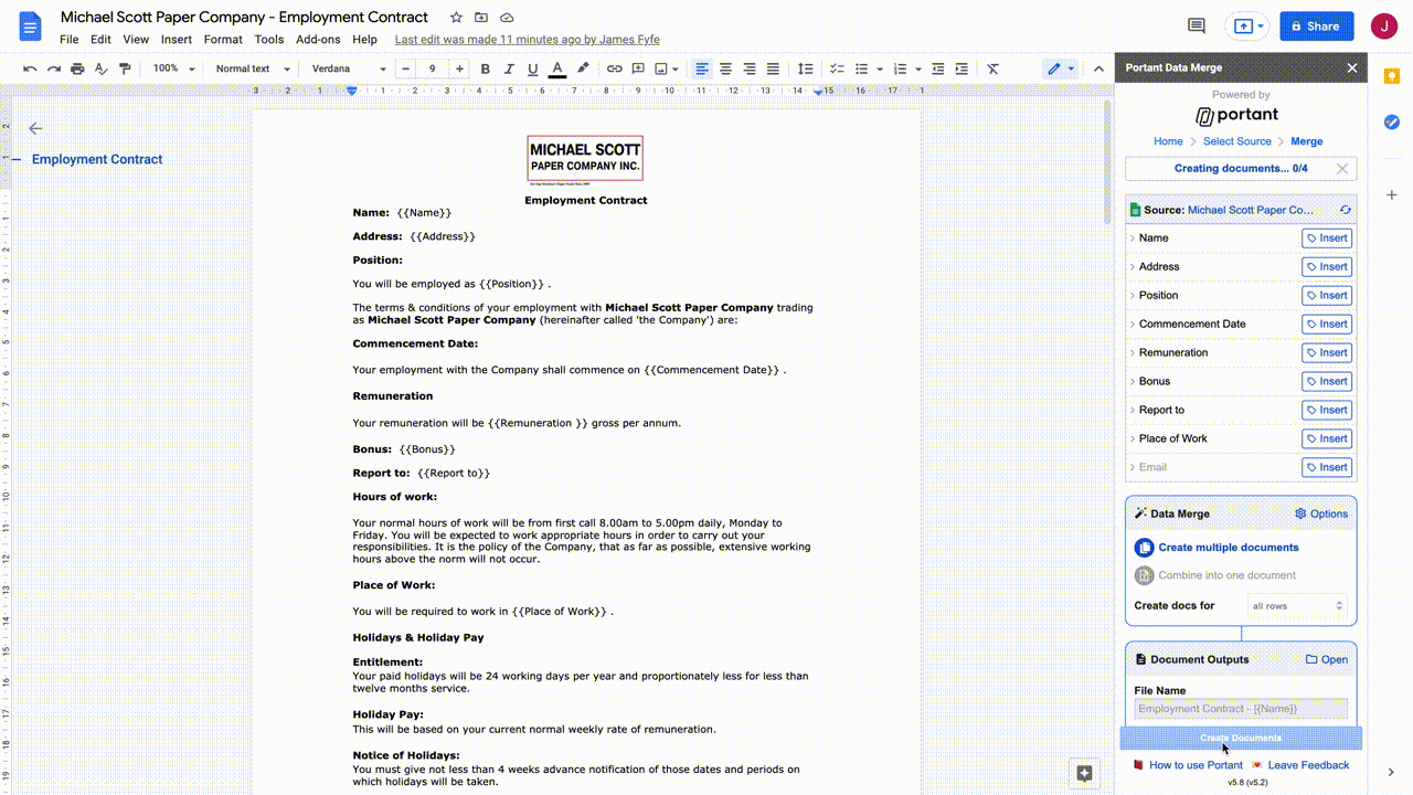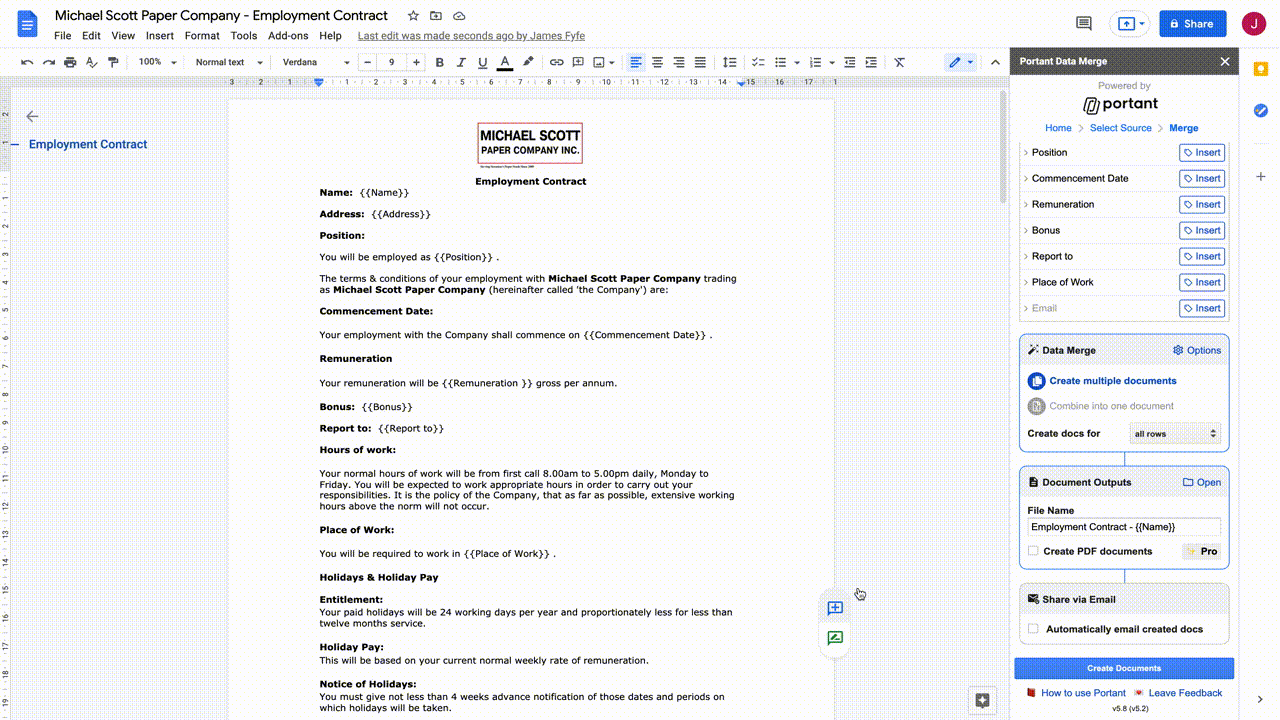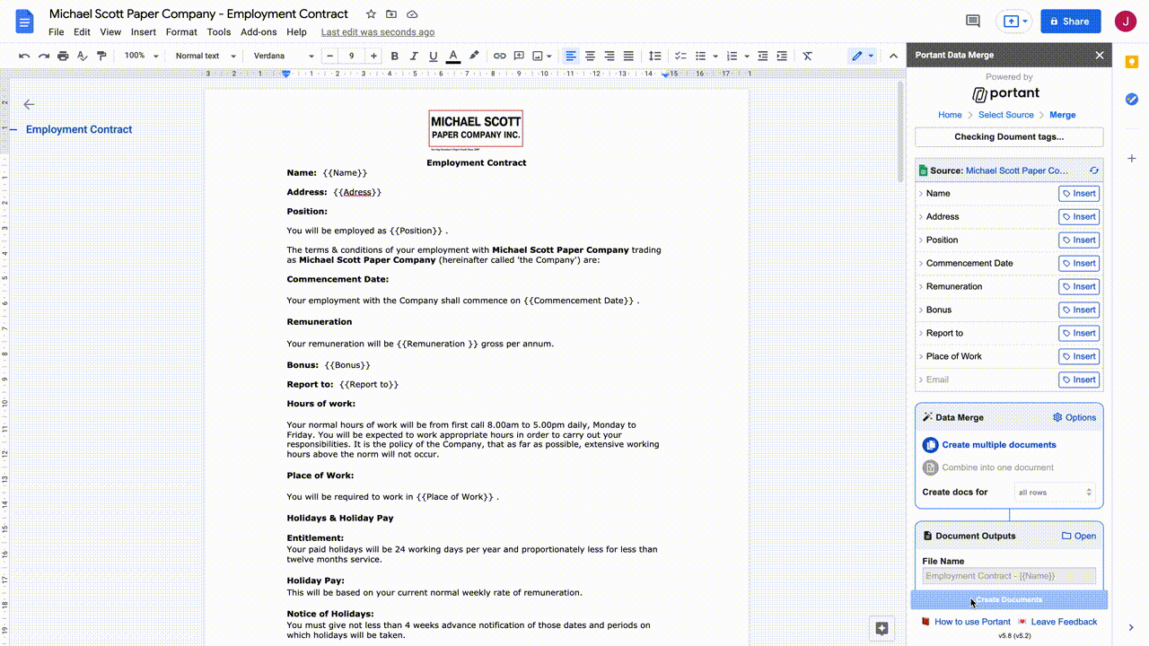With Portant Data Merge you can optimise your document workflows within Google Workspace, eliminating copy-paste from your document creation. This 'Complete guide to getting started with Portant Data Merge' will walk you through how to connect a source, add tags to a template document and place your documents on auto pilot.