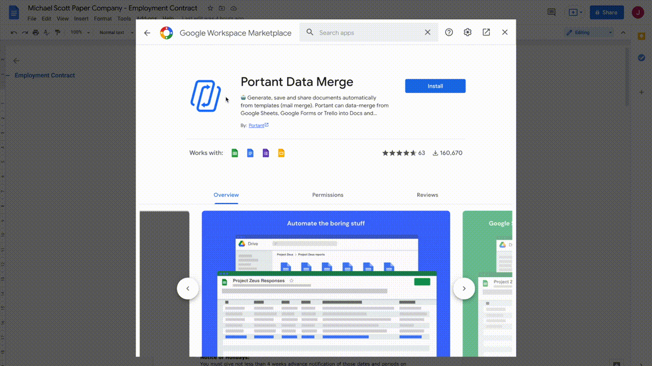 Portant can also help you mail merge with Google Docs or create invoices from google sheets