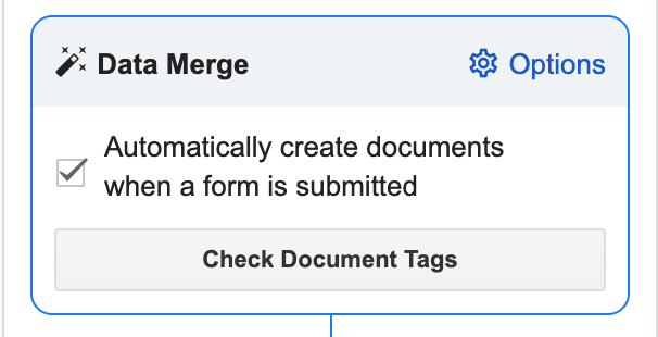 To turn this on automatically creating documents any time a form response is submitted, select the checkbox in the Data Merge box.