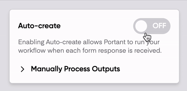 When you turn on Auto-create for this workflow, Portant will check the spreadsheet every 2 minutes and create documents any time it finds new data.