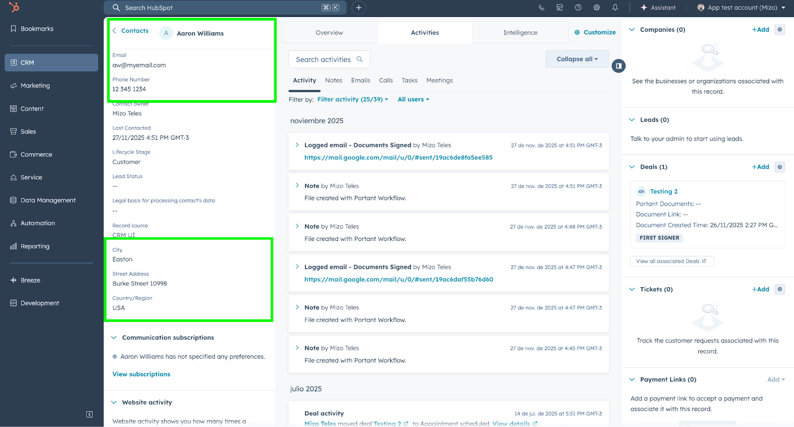 After the signer submits the document a signed copy of the document with the additional data is stored. The data from each filled Capture Field is also sent back to HubSpot to update the applicable record in HubSpot.