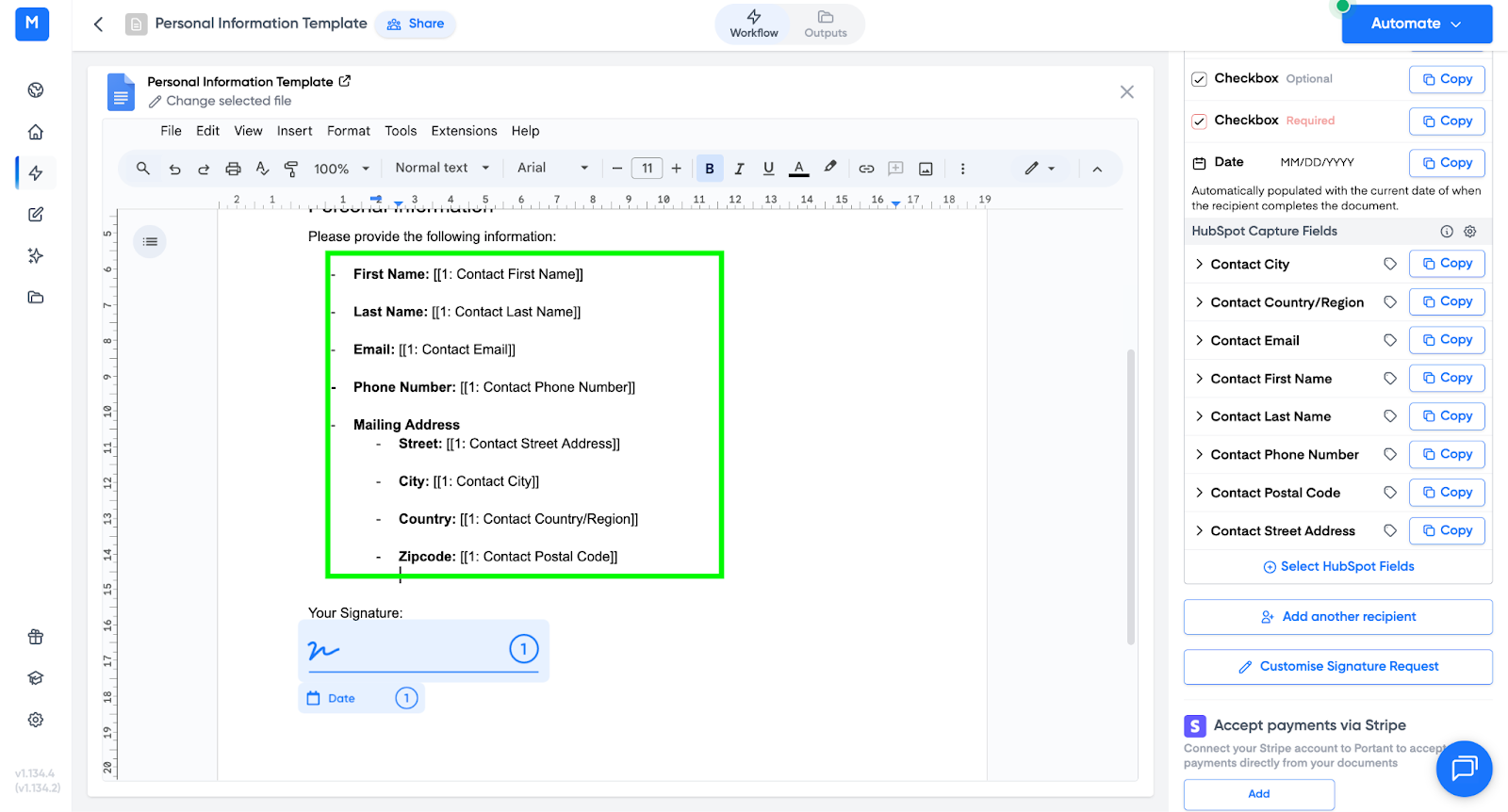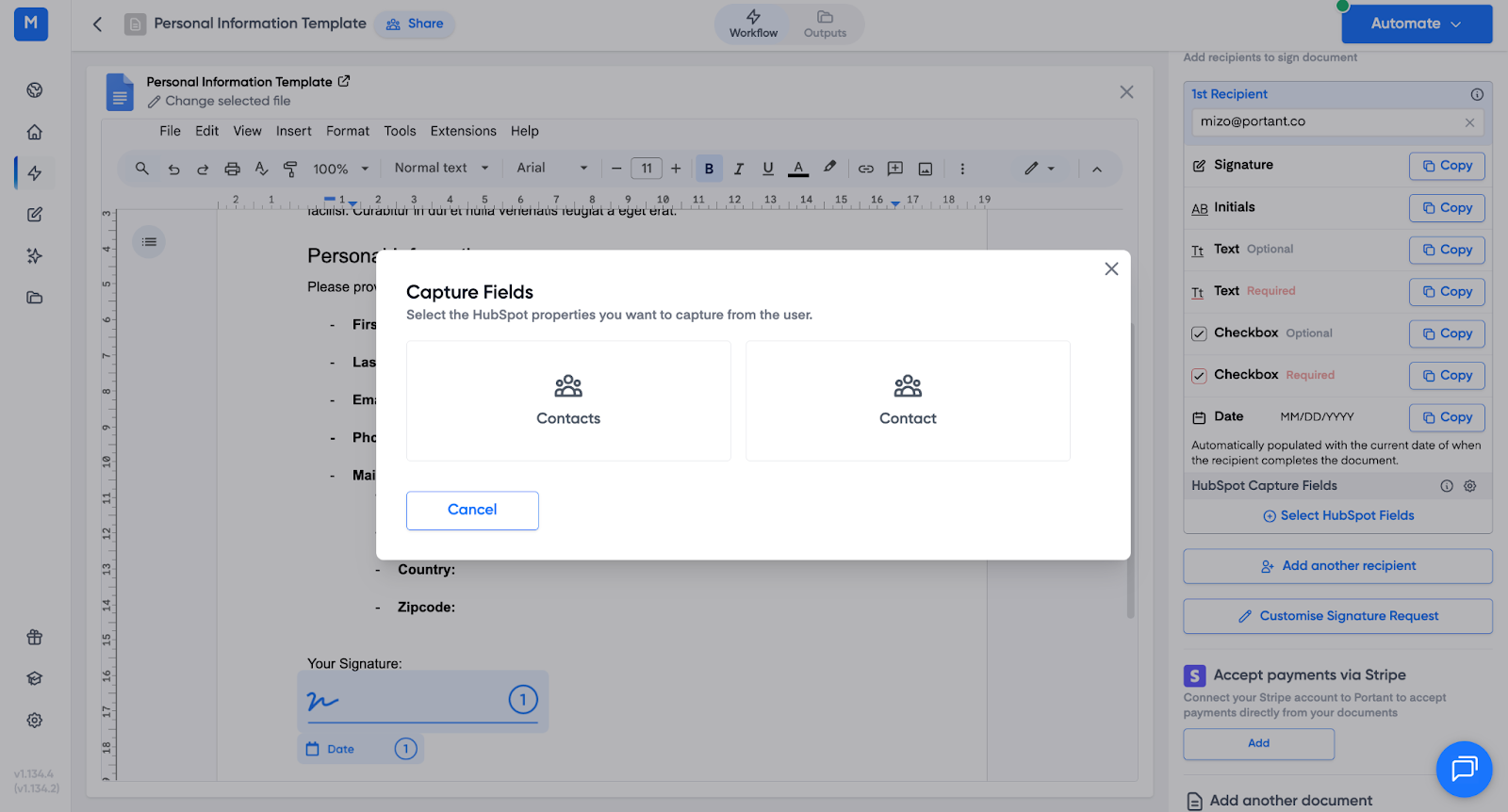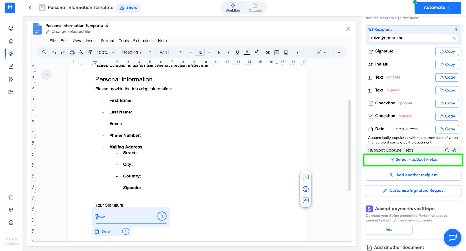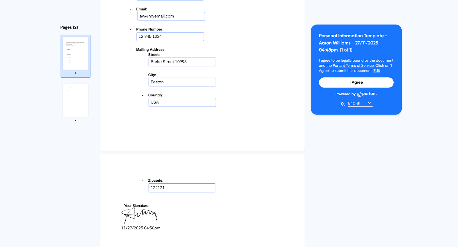 - Portant will generate a signable document that includes the fields you added
