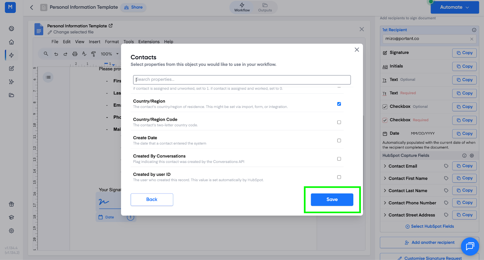 Portant will now add these properties to the HubSpot Capture Fields section of the workflow, here:
