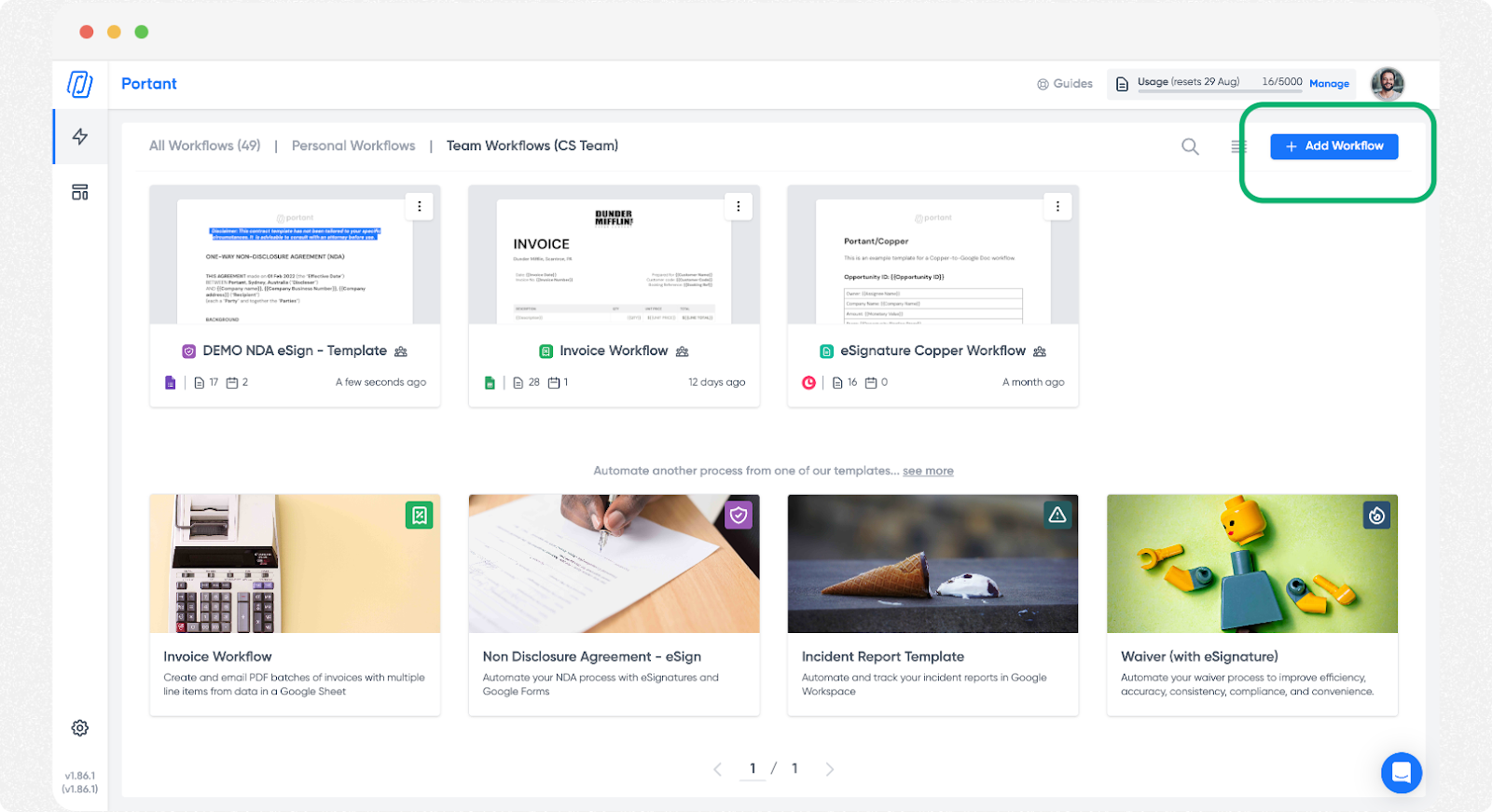 Click the "+ Add Workflow" button.