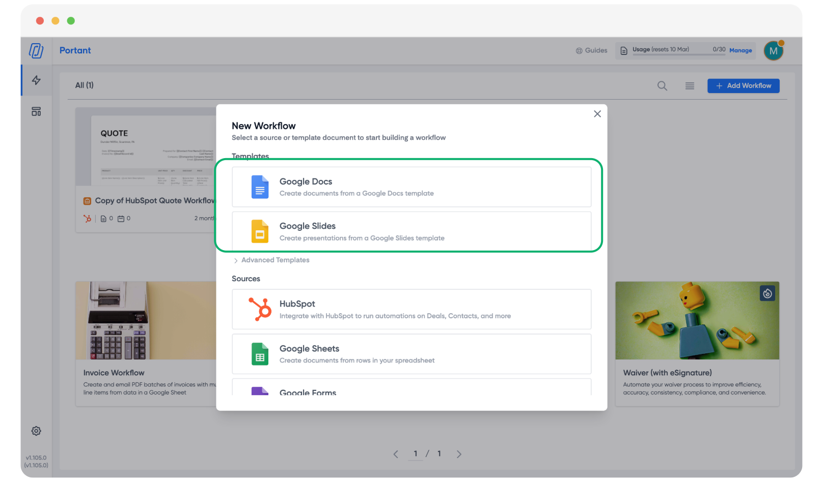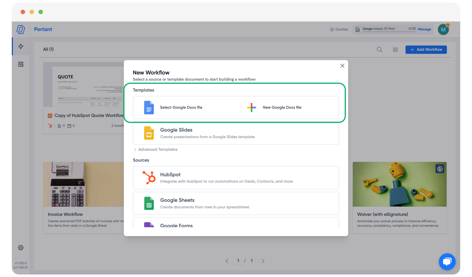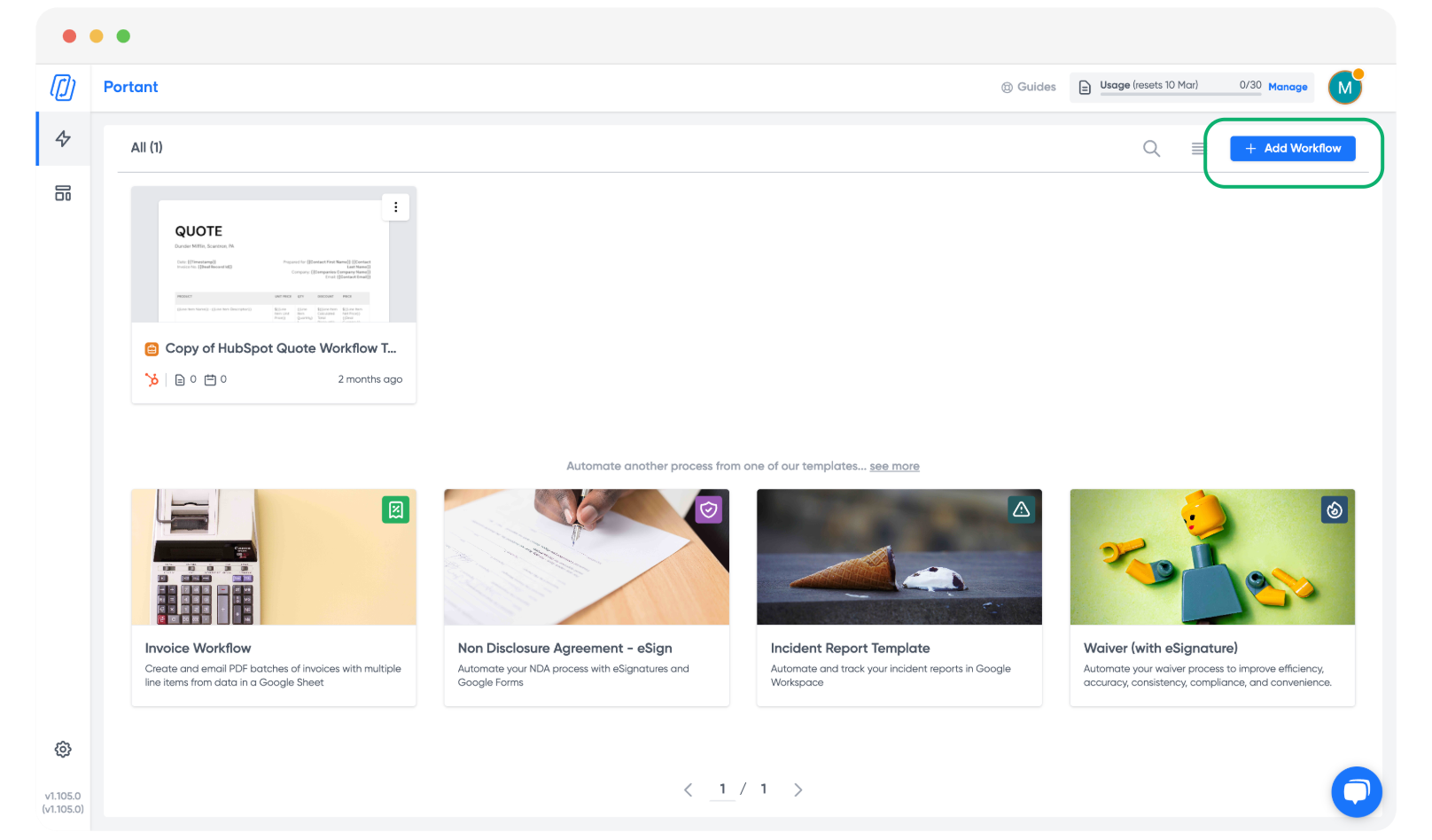 To get started, go to app.portant.co and click the "+ Add Workflow" button.