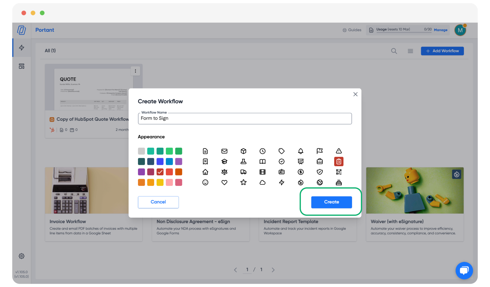 Once you've selected your template, give your workflow a title, color, and icon to personalize it.
