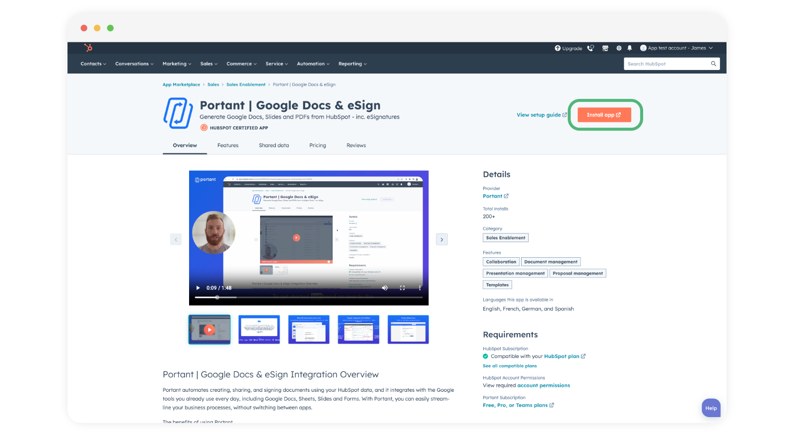 - Install Portant’s HubSpot App: If this is your first time using HubSpot as a source in Portant, you’ll need to install the Portant App for HubSpot.