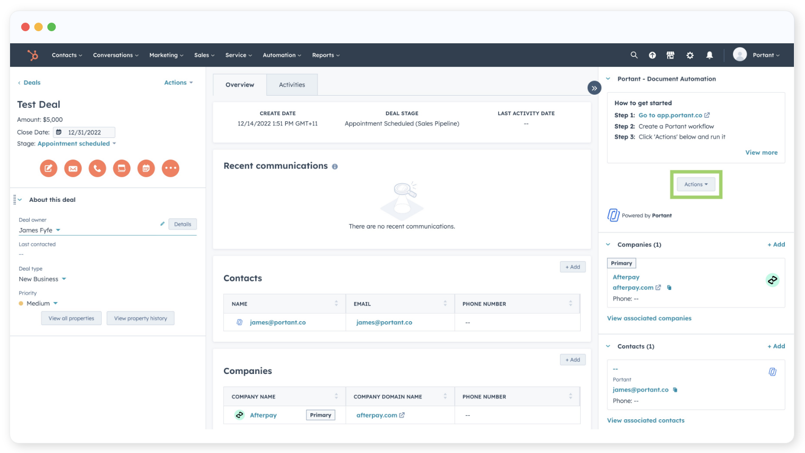 - Connect HubSpot to Portant